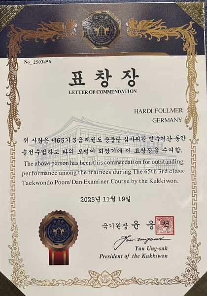 2024 - Kukkiwon 7. Dan Prüfung im World Taekwondo Headquarters Kukkiwon in Seoul.